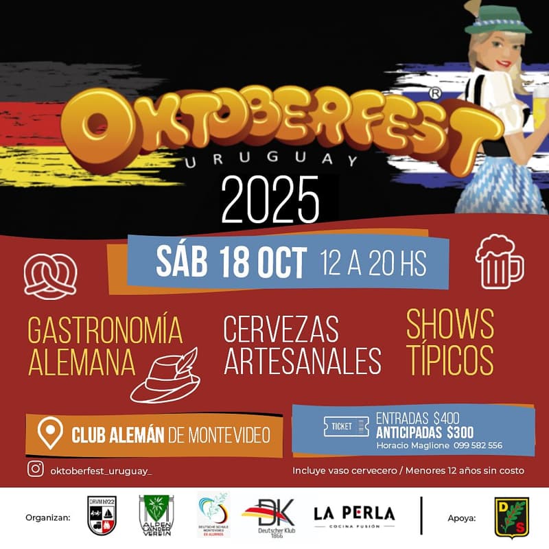 Este sábado 18 de octubre, de 12:00 a 20:00 horas, te esperamos en el Club Alemán de Montevideo para celebrar una nueva edición de la tradicional fiesta alemana: Oktoberfest Uruguay 2025.